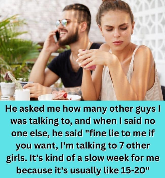 It starts with a loaded question. How many other guys is she talking to? When she answers honestly, he doesn’t believe her — and immediately counters with his own stats, like this is a leaderboard no one asked to see.