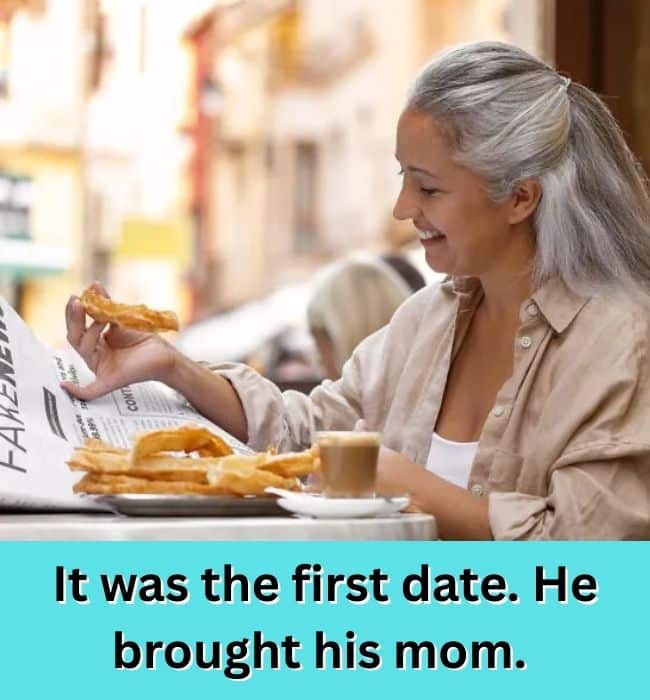 It’s supposed to be a one-on-one coffee. Instead, he arrives with his mother in tow, already seated and smiling like this was always the plan. No explanation, no warning — just immediate third-wheel panic.