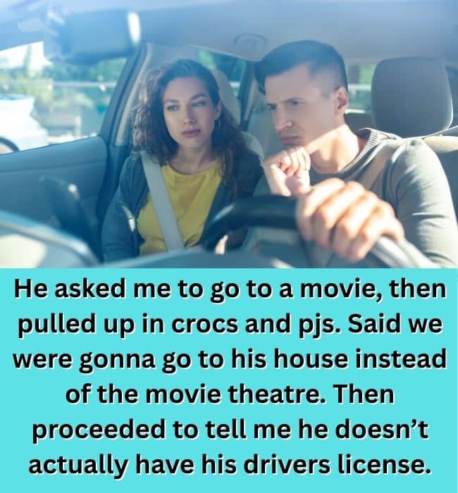 Then comes the plot twist no one ordered: he doesn’t actually have a driver’s license. Somehow, this information arrives after he’s already behind the wheel. It’s the kind of date story that escalates so quickly you forget how it started — and leaves everyone wondering how it didn’t end even worse.